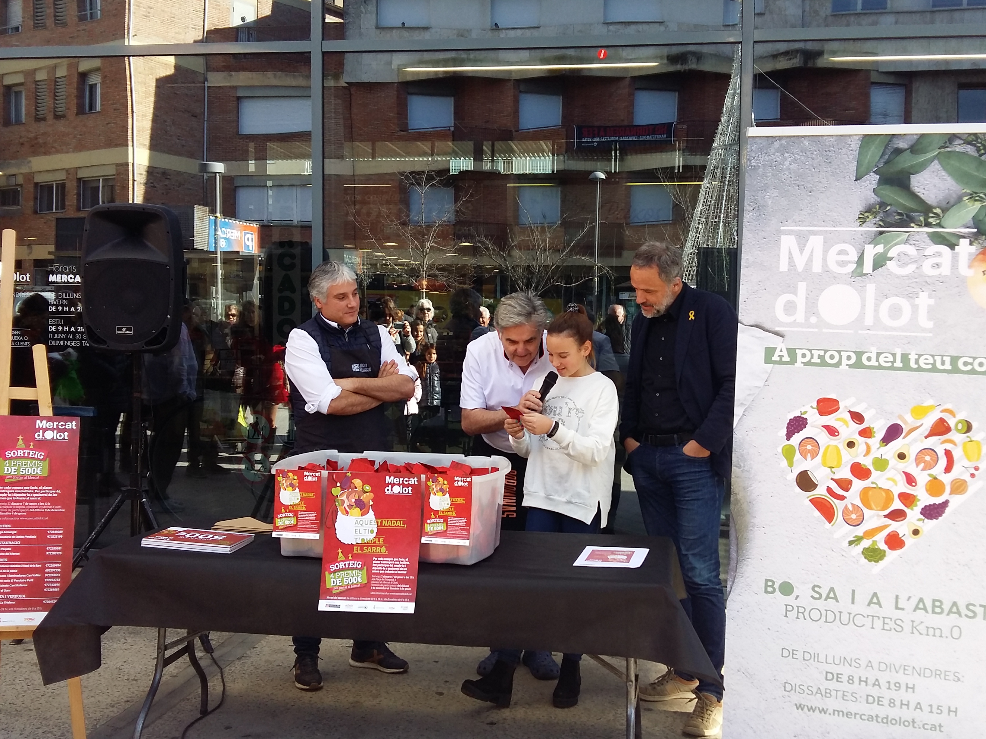 Els afortunats han estat Eva Espuña de Riudaura, Miquel Bosch d’Olot, Paqui Lopera d’Olot i Miquel Bartrina d’Olot. Cadascun d’ells ha obtingut un premi de 500€ per gastar-se a les parades del Mercat d’Olot.